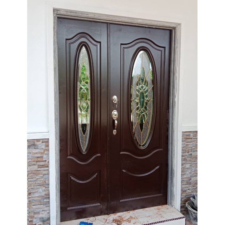 Pintu Kayu Cermin Depan Rumah Full Solid Wooden Door Tempered Glass Harga Kilang Tidak Termasuk Cat Syelek Shopee Malaysia